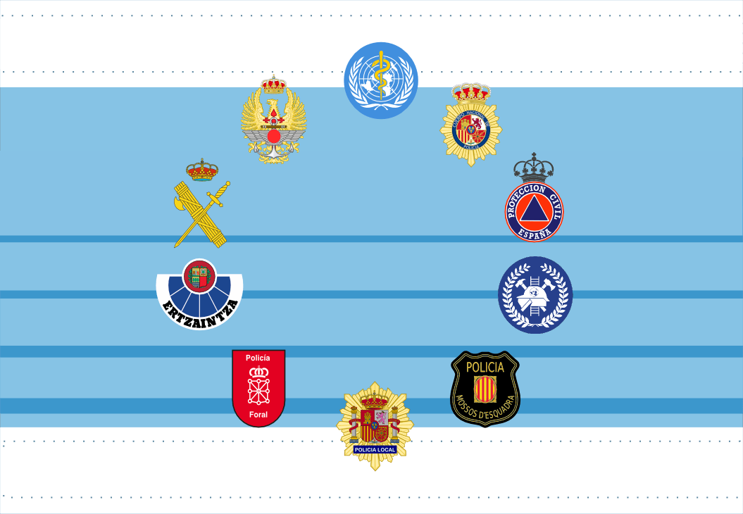 Bandera Coronavirus, como homenaje a las Fuerzas de Seguridad del Estado y a los sanitarios. Presentada al concurso nacional de Vexilologia
