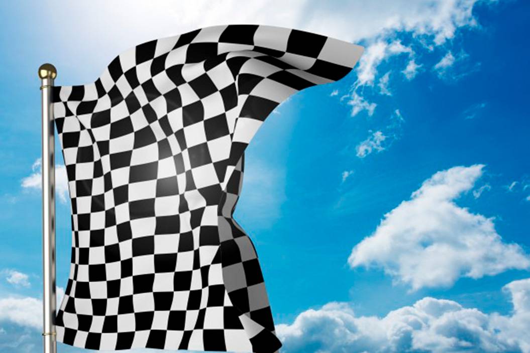 La bandera a cuadros se muestra en la línea de llegada para indicar que la carrera ha finalizado oficialmente.