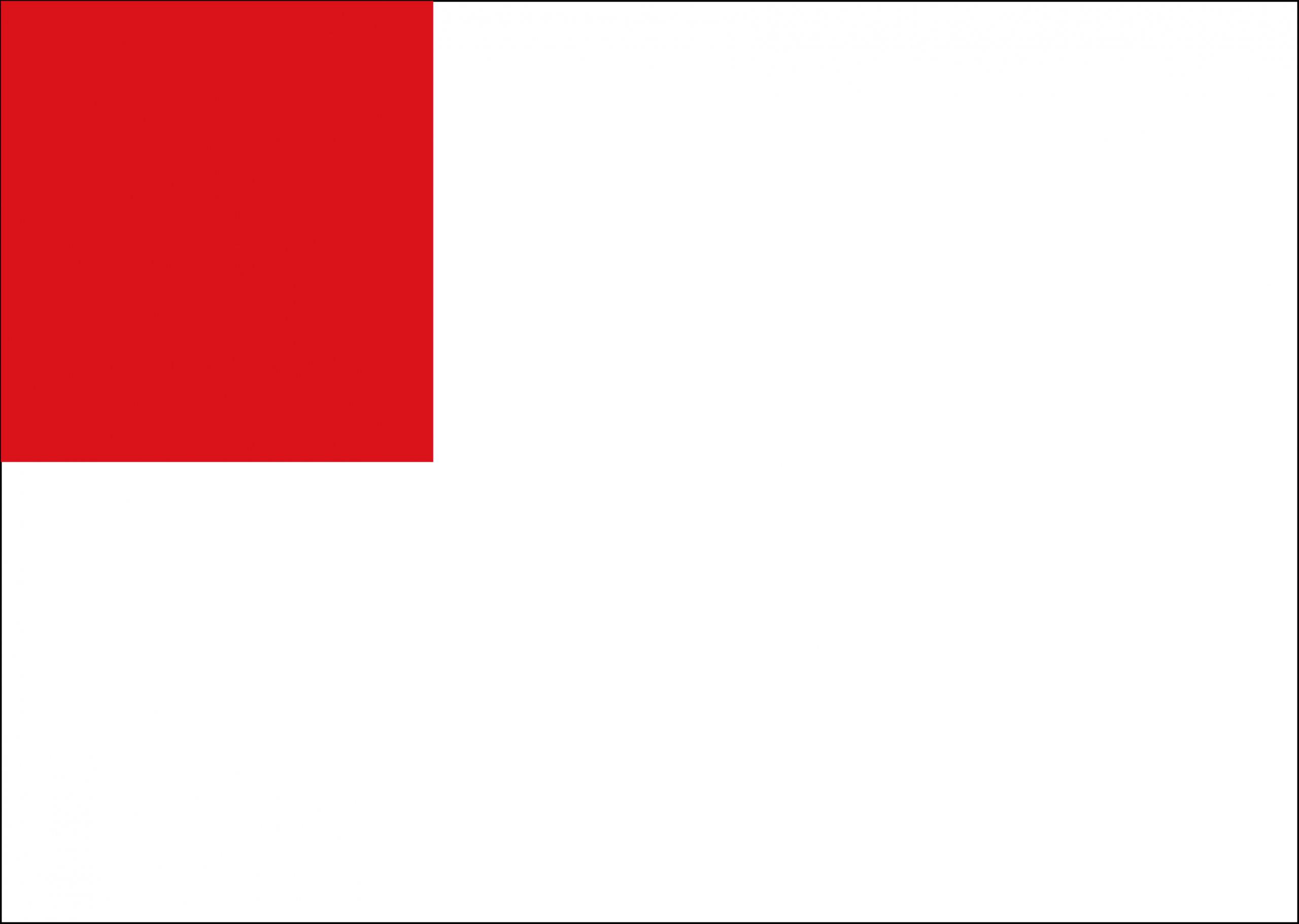 La bandera de Bilbao luce sobre fondo blanco, el característico cuadro rojo de la esquina superior izquierda igual al Azul de su vecina Bandera de San Sebastian