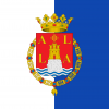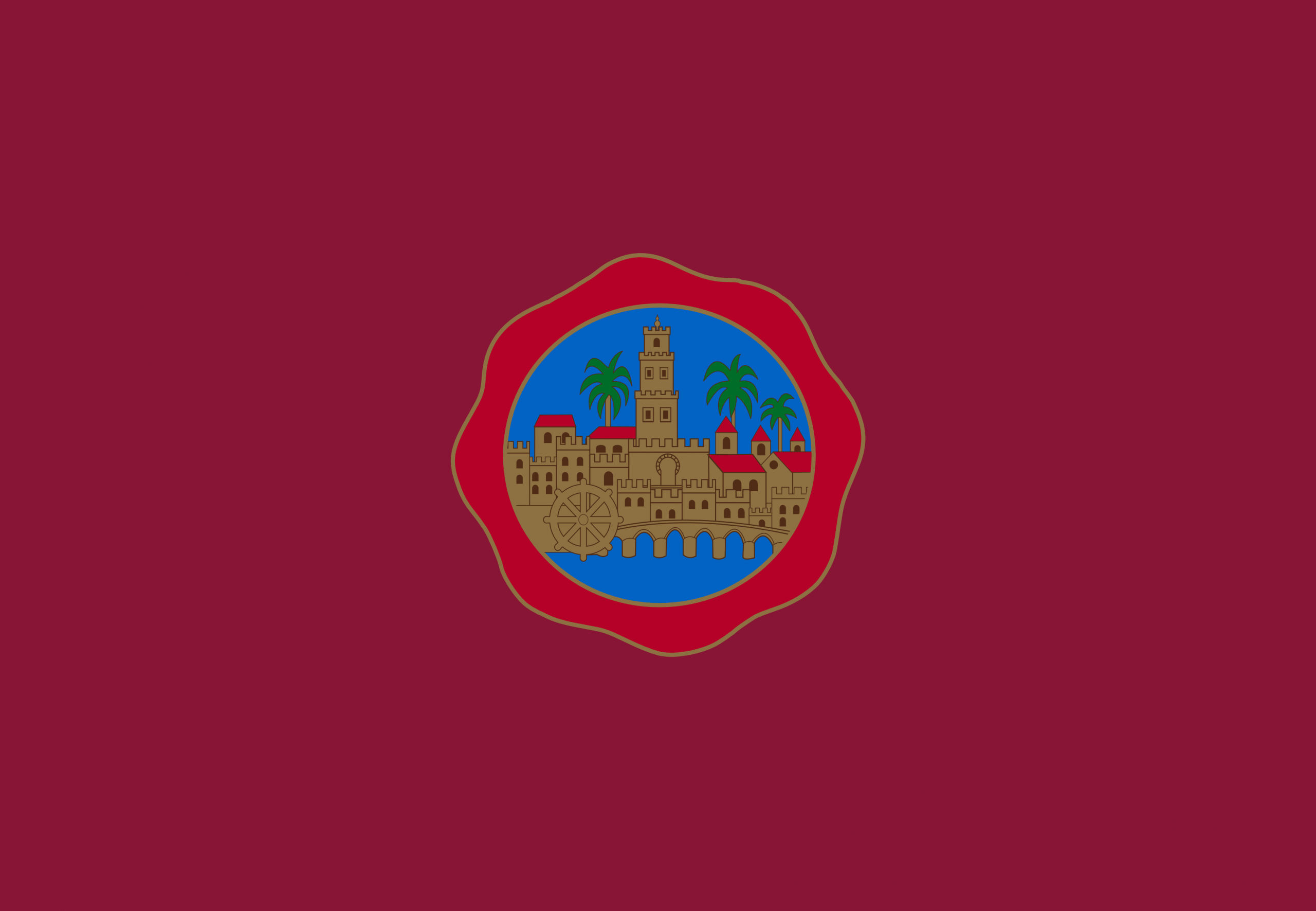 La bandera de Córdoba, de color burdeos con el escudo de la ciudad al centro. El escudo representa un sello de cera con los edificios mas emblematicos de la ciudad , en su interior