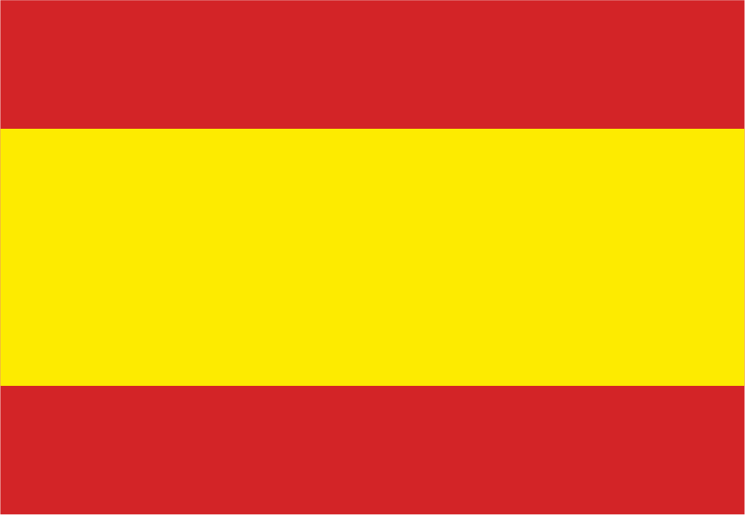 La bandera de España está formada por tres franjas. Una amarilla central que mide el doble de ancho que las otras dos rojas que la flanquean.