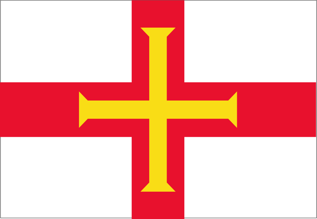 La bandera de Guernsey tiene estampada sobre fondo blanco la cruz de San Jorge. Y, sobre esta la cruz de Guernsey para mostrar que las islas habían sido parte del ducado original de Normandía