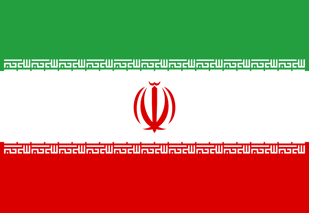 La bandera de Irán tiene su forma actual desde el 29 de julio de 1980 valida y refleja los cambios que Irán experimentó desde la Revolución Islámica. La bandera consta de tres franjas horizontales iguales: parte superior verde, blanco en el centro y rojo debajo. El verde simboliza el Islam, conoce la paz, la amistad, el coraje y el derramamiento de sangre roja en la guerra. Los colores tienen una larga tradición en Persia, el 18 al menos hasta que se remonta siglos atrás. Tricolor como se encuentran por primera vez en la bandera nacional de 1906. En su centro está el emblema de Irán. Tiene un diámetro que corresponde a una séptima parte de la bandera de longitud. Además, las rayas verdes y rojas alrededor de 22 (2 × 11) inscripciones cúficas de Allahu Akbar se complementaron (Dios es el más grande). Esta es una referencia al comienzo de la Revolución Islámica el día 22 del mes 11 en el calendario iraní (11 de febrero de 1979).