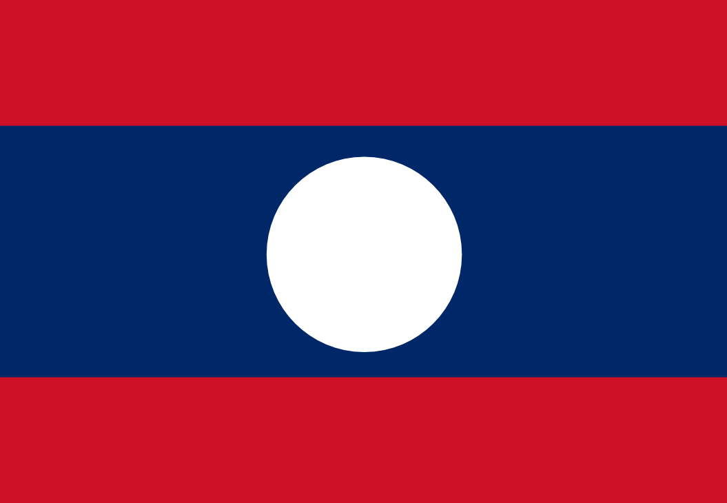 La bandera nacional actual fue diseñada en 1945 por Maha Sila Viravong, miembro del gobierno de Lao Issara, un famoso nacionalista, intelectual y estudioso de la literatura, historia y cultura tradicional de Laos.