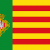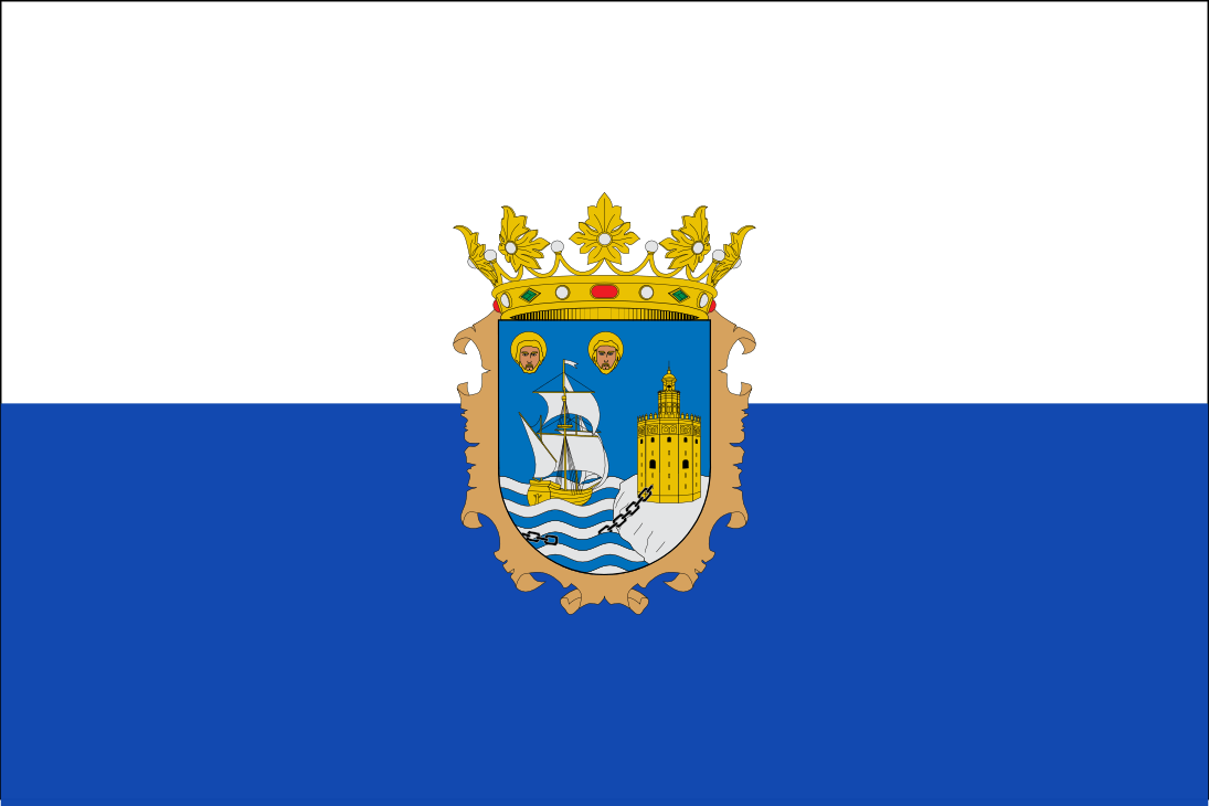 Bandera de Santander, esta partida en dos cuarteles, Azul y blanco con el escudo de la ciudad en el centro.