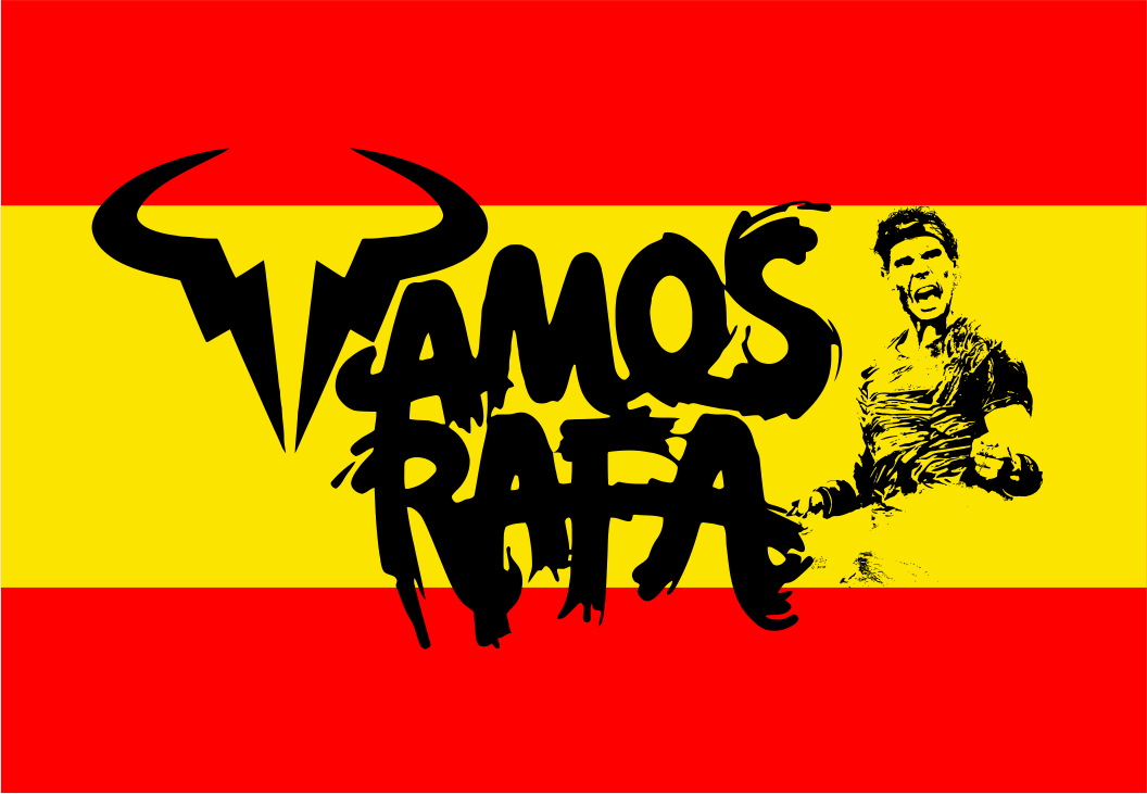 La bandera Vamos Rafa, con el fondo de la bandera Española