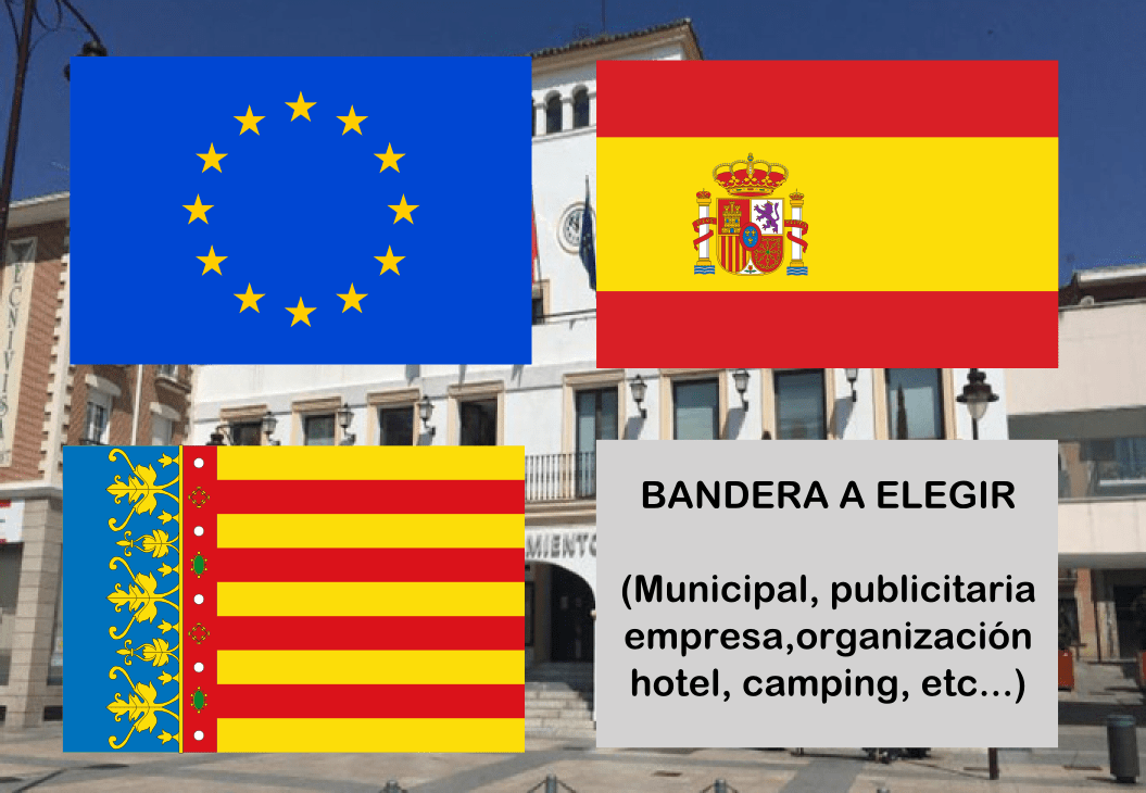 Pack de 4 banderas para realizar una compra mas cómoda. Incluye la bandera de Europa, España, Valencia y la cuarta a elegir