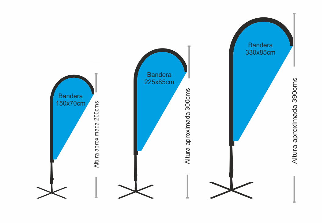 Para otras medidas o configuraciones, consultar precios y disponibilidad enviándonos un correo a info@banderasysoportes.com.