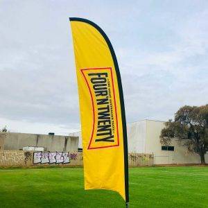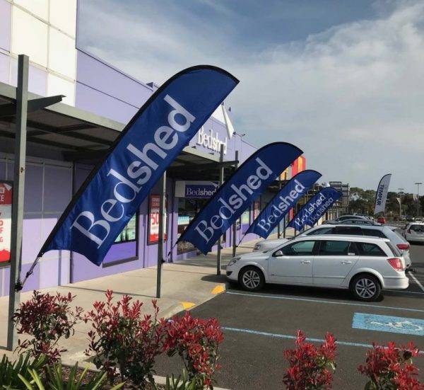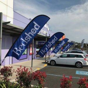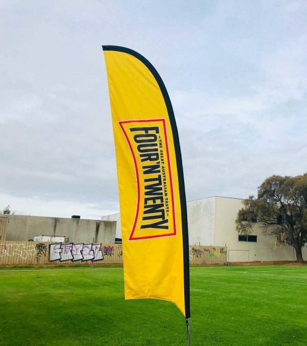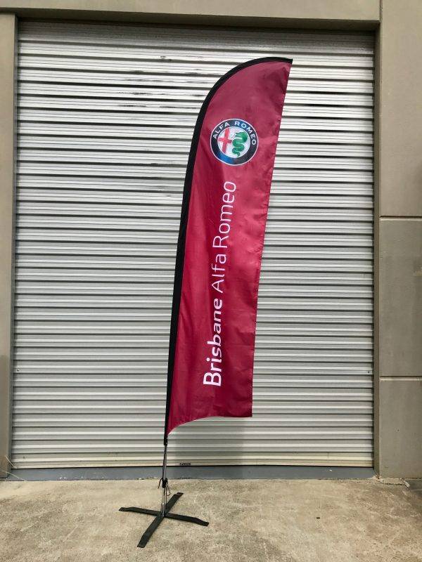El kit completo incluye bandera estampada con mástil, base cruz con contrapeso de H2O y bolsa de transporte.
