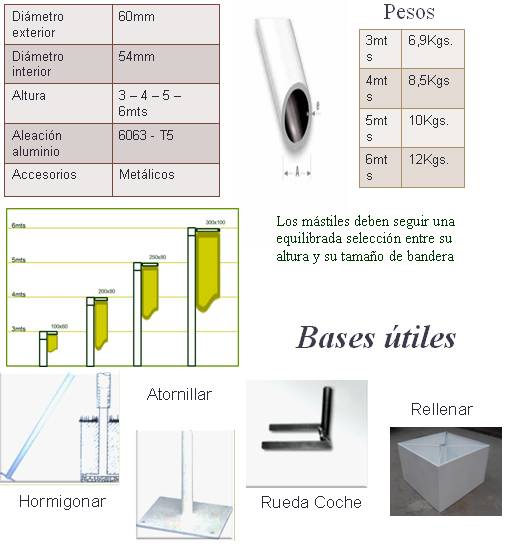 Para otras medidas o configuraciones, consultar precios y disponibilidad enviándonos un correo a info@banderasysoportes.com.